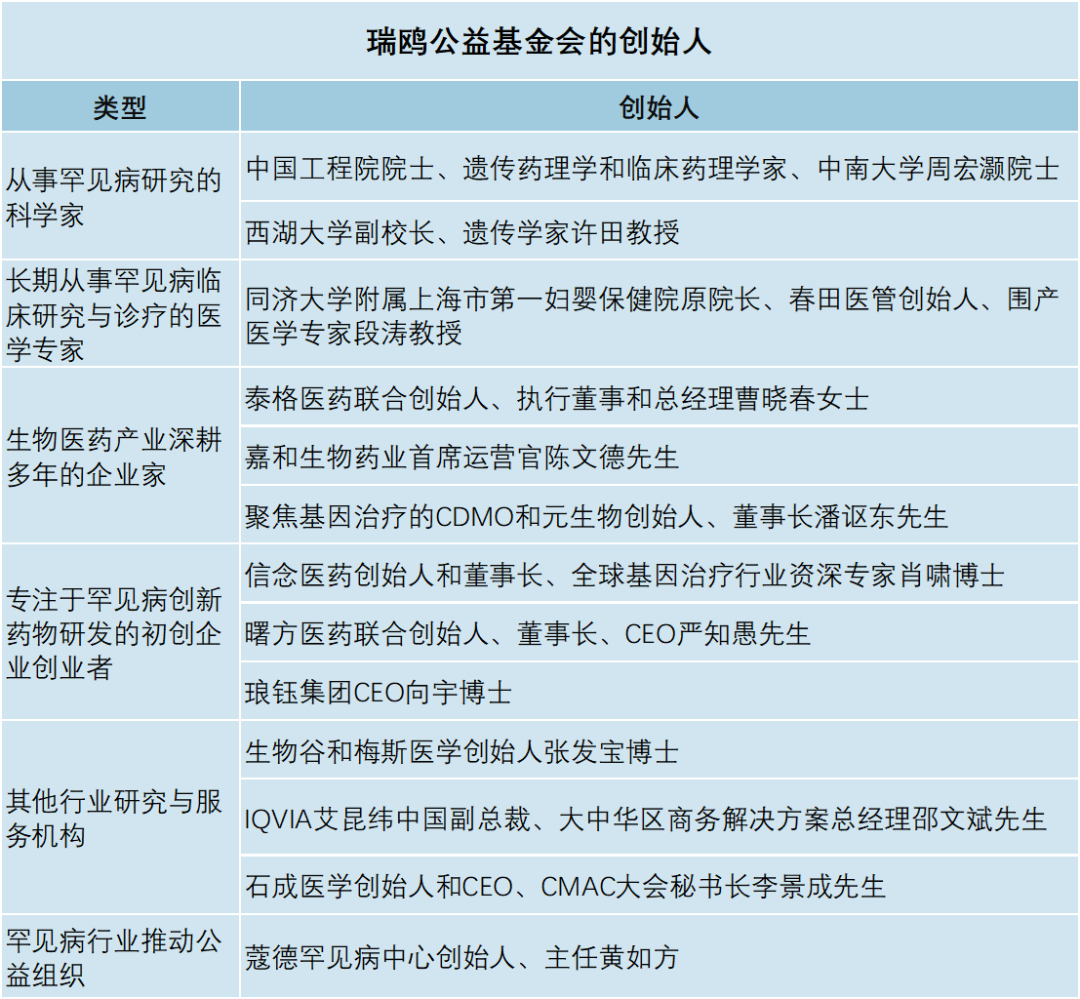中国工程院院士、遗传药理学和临床药理学家、中南大学周宏灏院士是创始人之一,他同时担任基金会的科学顾问委员会主席。他认为,罕见病是一个影响全球上亿人的重要公共健康问题,由于每种疾病的患者数量有限,知识匮乏,护理需求独特而复杂,医疗专业人员和社会各界对罕见病的支持显得更加困难和重要。近些年来,中国政府加大了对罕见病研究和护理的支持力度,逐步改善罕见疾病患者在诊断和治疗、获得药物和支付医疗费用方面的状况。基金会定位在助推罕见病药物基础科研和应用转化意义重大。